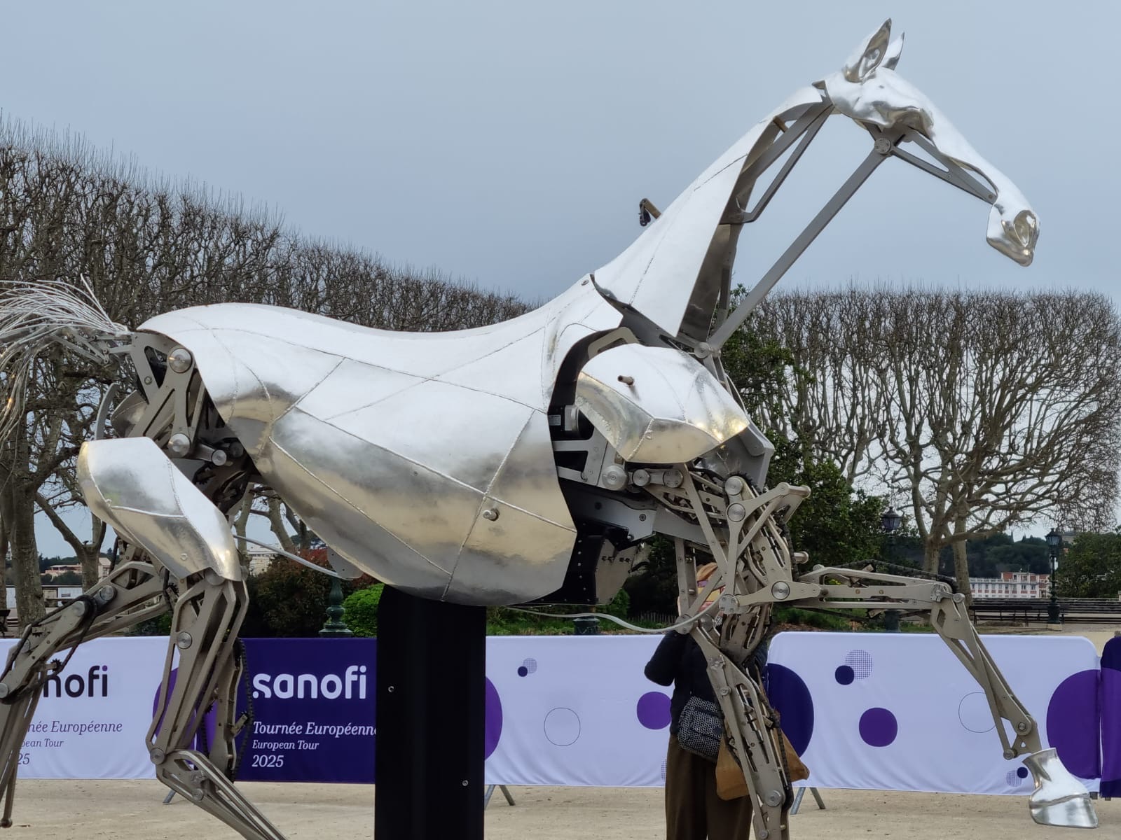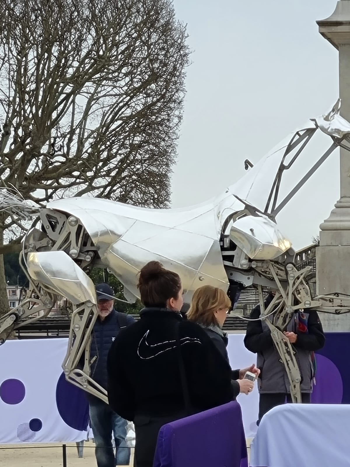 Dans le cadre de la Semaine des mathématiques, nous avons profité de la présence à Montpellier de « Zeus », le cheval métallique de la cérémonie d’ouverture des Jeux de Paris 2024, exposé sur la promenade du Peyrou du 6 au 14 mars 2025. Cette œuvre impressionnante, conçue par l’Atelier Blam (Nantes), mesure environ 1,80 mètre et pèse près d’une tonne. L’exposition proposait également, à certaines dates, des animations scientifiques grand public autour de l’innovation.
